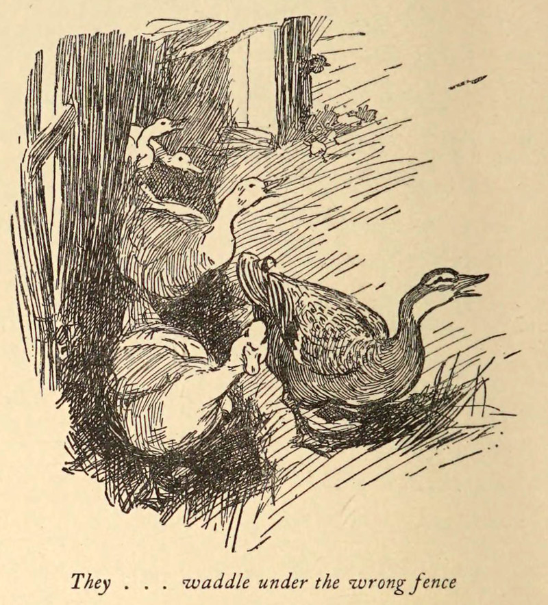 "They waddle under the wrong fence."  From The Diary of a Goose Girl by Kate Douglas Wiggin, 1902.