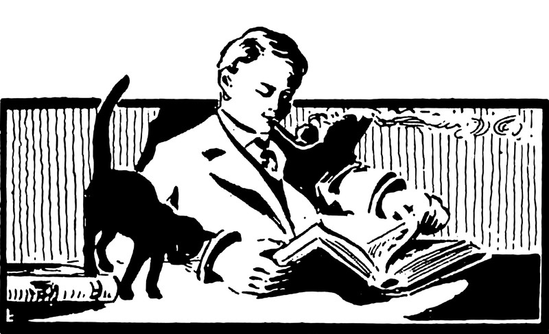 #vintage illustration #cat #reading #vintage yearbook #yearbook #pipe smoker #1900s #illustration #vintage man #man