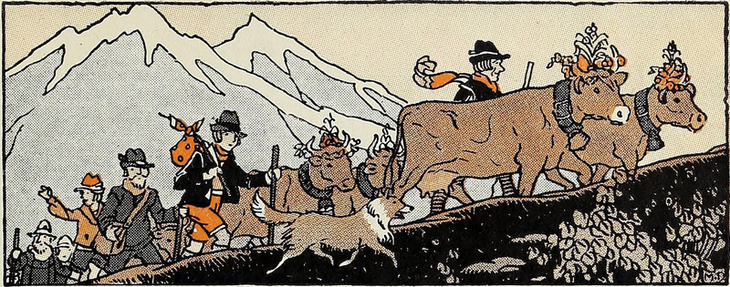 #vintage illustration #cow #1900s #switzerland #illustration #swiss