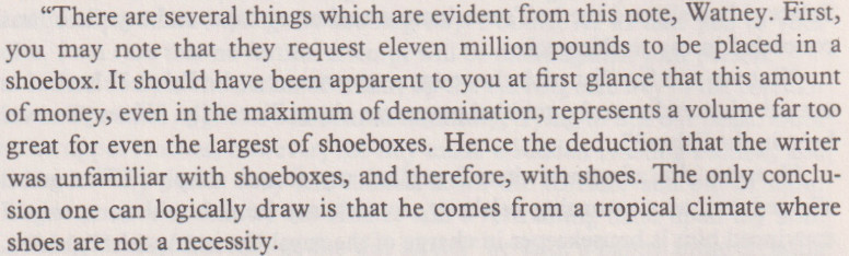 "Arrange for a four-in-hand while I send a message for the Inspector....No, no, Watney! Not a cravat! A carriage!"