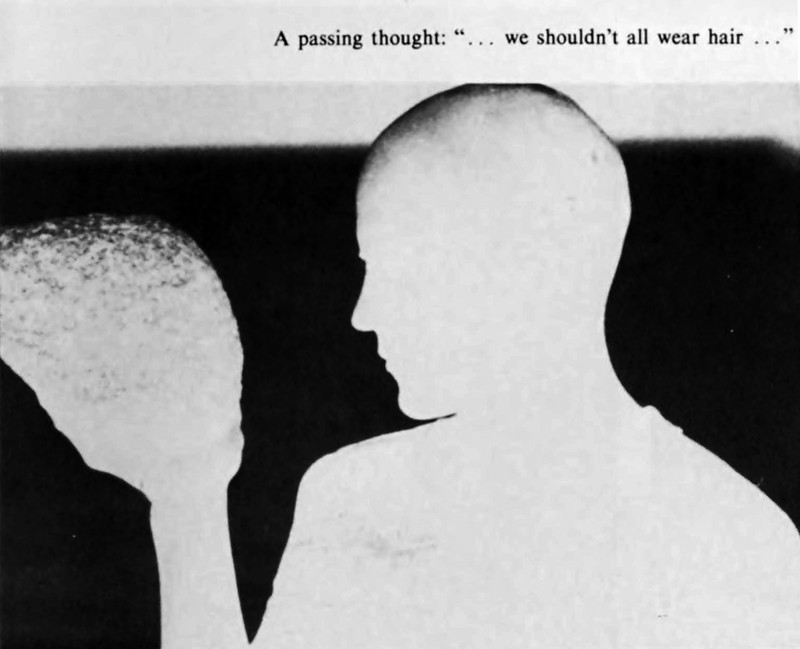 "A passing thought: 'we shouldn't all wear hair.'"  From Carleton College's 1984 yearbook.