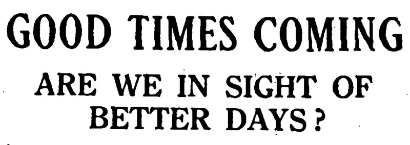"Good times coming.  Are we in sight of better days?"  From The Children's Newspaper, 1921.