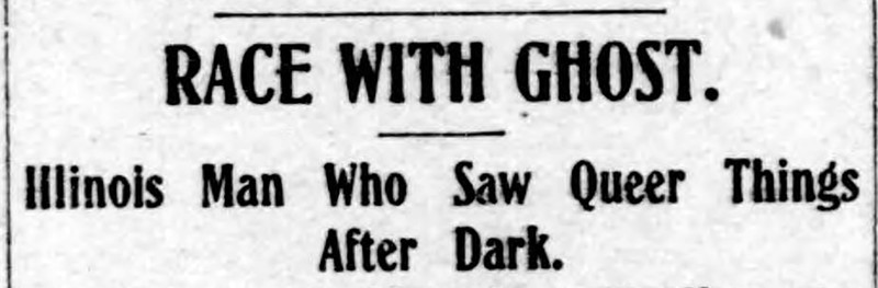 "Race with ghost.  Illinois man who saw queer things after dark."  From The Duluth Evening Herald, 1905.