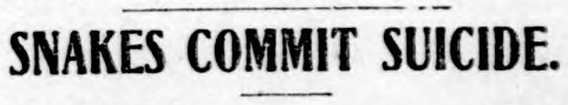 "Snakes commit suicide."  From The Duluth Evening Herald, 1905.