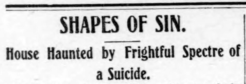 "Shakes of sin.  House haunted by frightful spectre of a suicide."  From The Duluth Evening Herald, 1905.