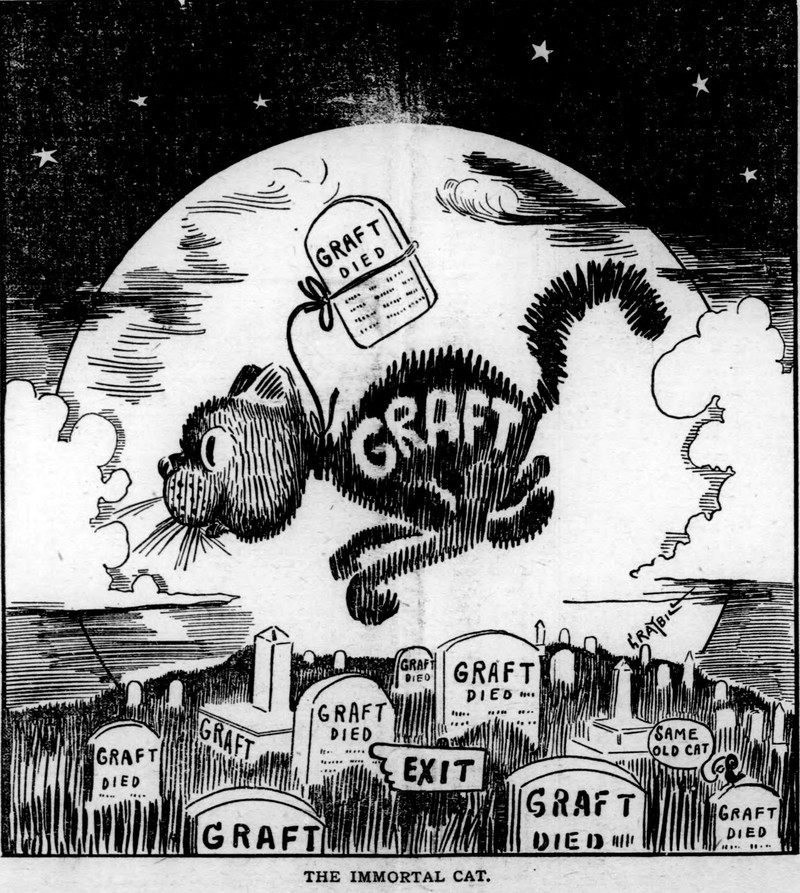 #vintage illustration #political cartoon #graveyard #cat #graft #1900s #illustration