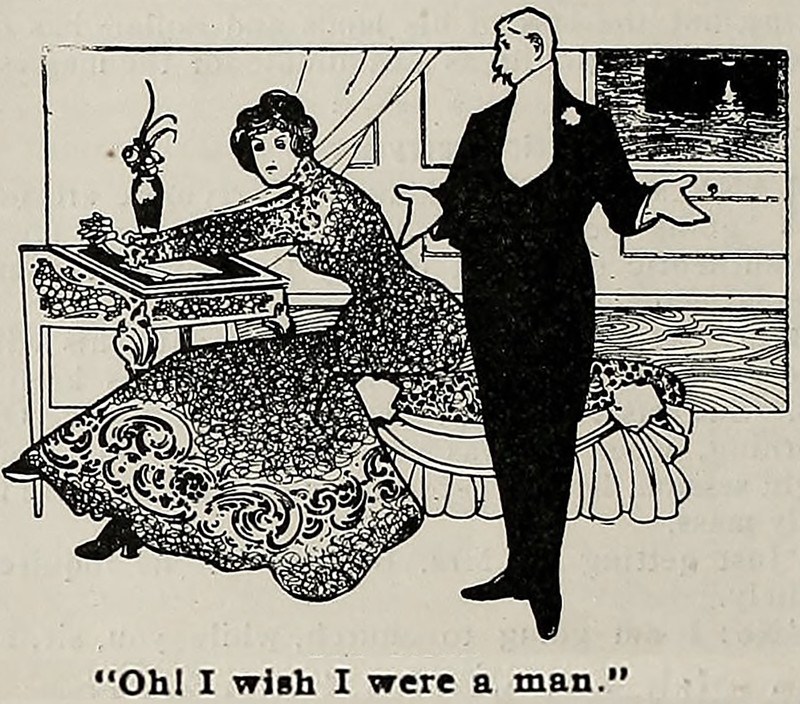 "Oh!  I wish I were a man."  From The Wasp, 1902.