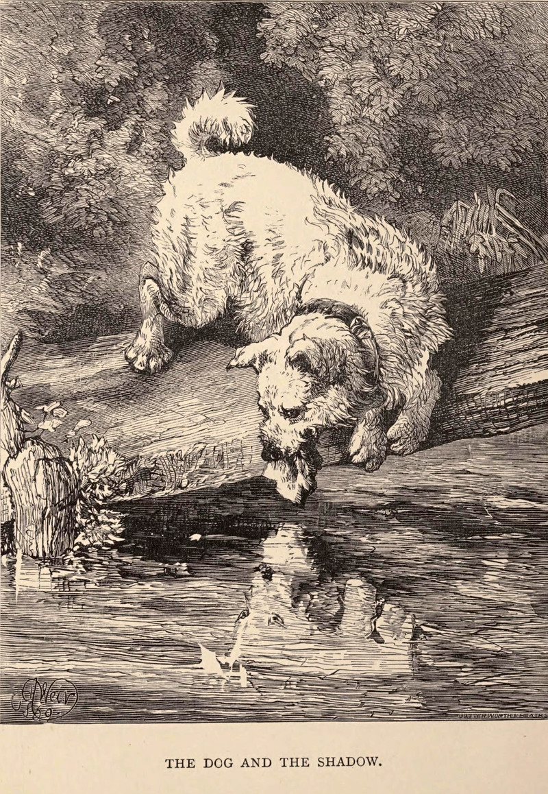 #vintage illustration #fable #dog #reflection #1870s #illustration