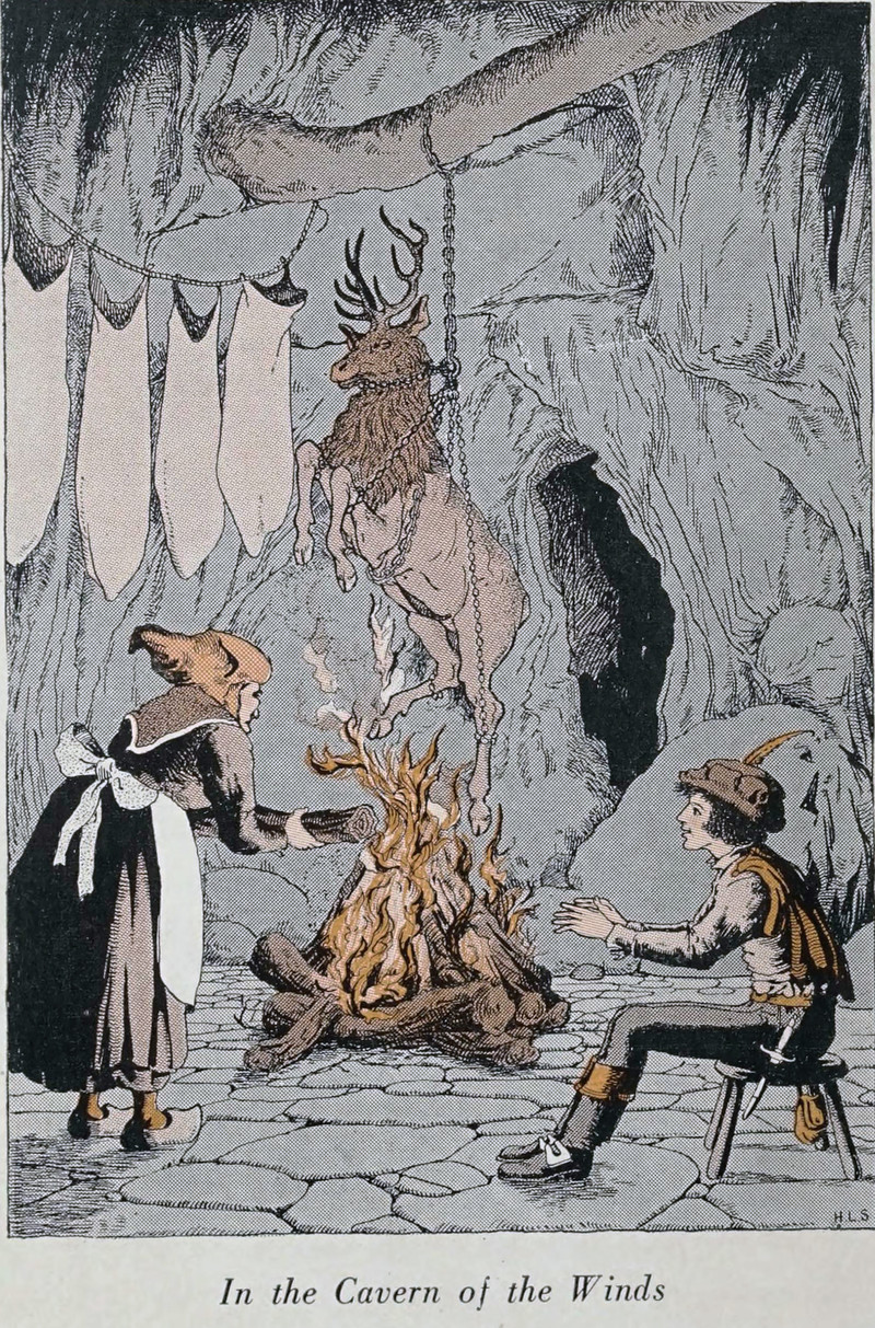 #vintage illustration #fire #cave #cavern #deer #illustration #1910s