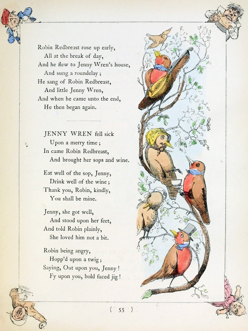 #vintage illustration #bird #robin #illustration #nursery rhyme #poem #1850s