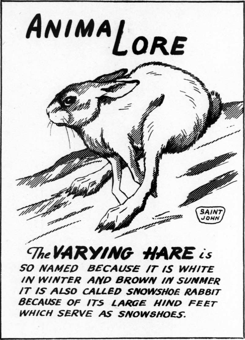 #vintage illustration #hare #1940s #illustration #varying hare #snowshoe hare