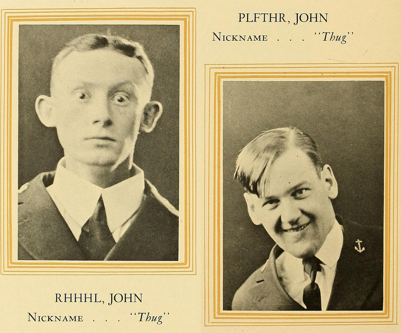 Bztchr, Pbbbf, Aajth, Phhhf, Sjlnv, Mnfhj, Rhhhl, and Plfthr ... all Johns and all nichnamed "Thug."  From the United States Naval Academy's 1926 yearbook.  See Webster's Dictionary of Improbable Words: All-Consonant and All-Vowel Words.