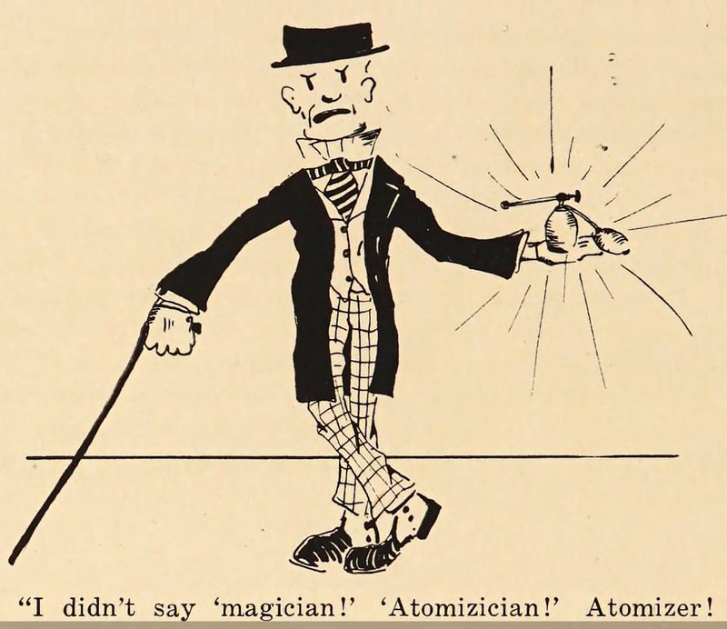 "I didn't say 'magician'!  'Atomizician!'  Atomizer!"  From Armour Institute of Technology's 1916 yearbook.