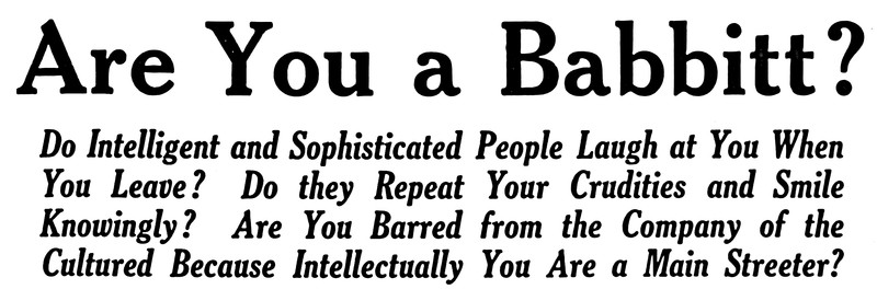 #vintage ad #1920s #vintage headline #headline #ad #sinclair lewis