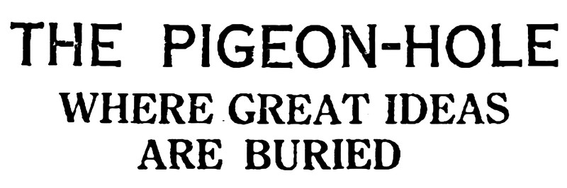 "The pigeon-hole, where great ideas are buried."  From The Children's Newspaper, 1919.