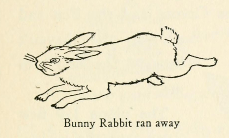 "Bunny Rabbit ran away."  From Taytay's Tales by Elisabeth Willis De Huff and illustrated by Fred Kabotie and Otis Polelonema, 1922.