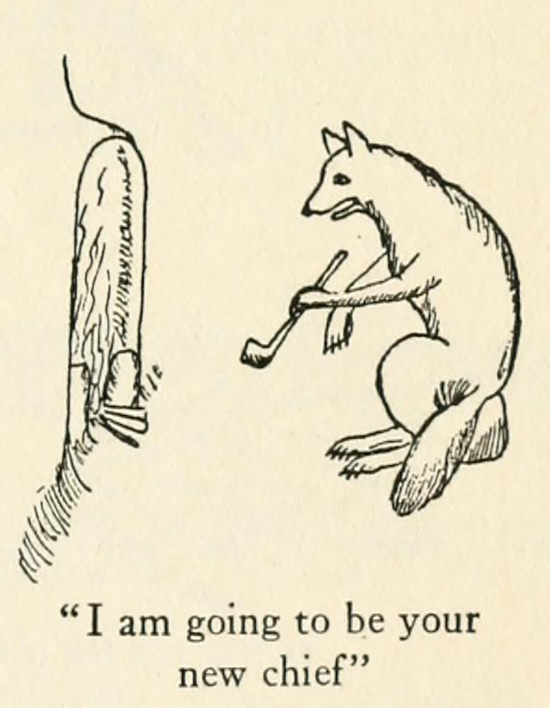 #vintage illustration #fable #anthropomorphism #fox #pipe smoker #native american #1920s #illustration