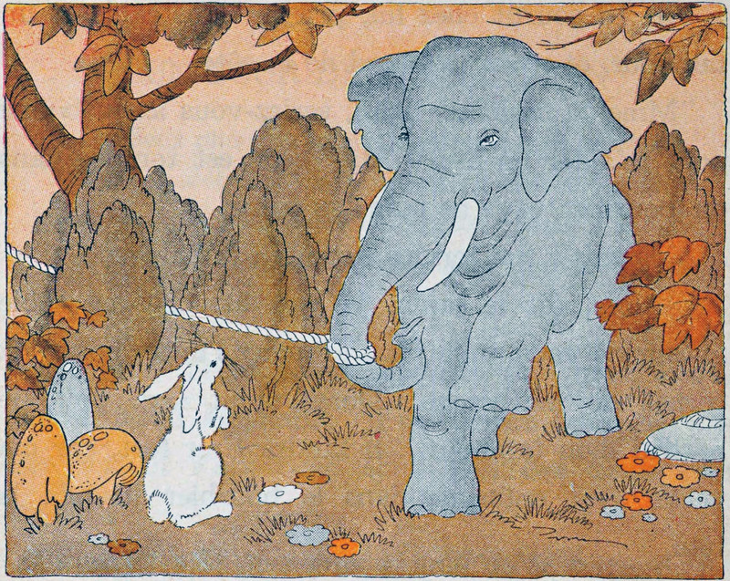 #vintage illustration #fable #elephant #rabbit #1900s #illustration