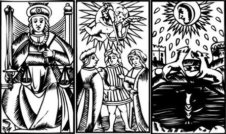 | * Historians must reconstruct the past out of hazy memory. "Once upon a time" requires "second sight." The "third eye" of intuition can break the "fourth wall" of conventional perspectives. Instead of "pleading the fifth," historians can take advantage of the "sixth sense" and be in "seventh heaven." All with the power of hindpsych, the "eighth wonder of the world." It has been said that those who forget the past are condemned to repeat it. Therein lies the importance of Tarot readings for antiquity. When we confirm what has already occurred, we break the shackles of the past, freeing ourselves to chart new courses into the future. |