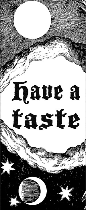 Are the whispered words pictured on the right of an angelic or a diabolical nature?Answer: Diabolical. "Some Demon whispered, 'Visto! have a taste.'" —Alexander Pope, "Epistle IV," The Works of Alexander Pope Vol. III, 1881, p. 173. (The answer is in black text on the black background. Highlight it to view.) --- Gordon writes: Love this series!