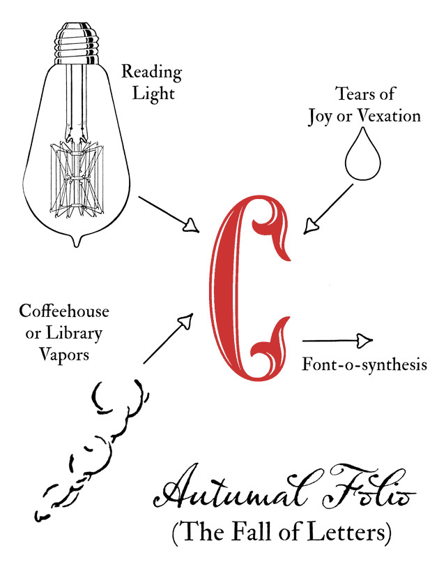 From Prof. Oddfellow's sketchbook: This piece was inspired by Andy Paik and Arcana Chaos. The red letter C is from the award-winning typeface created for our One-Letter Words: A Dictionary (HarperCollins) by Mucca Design.