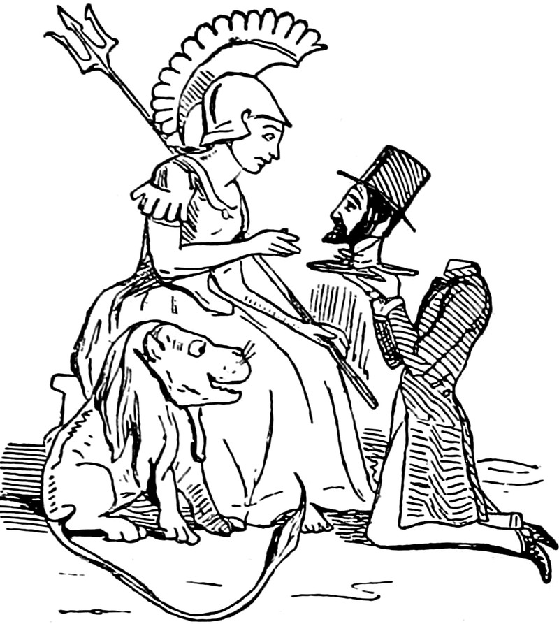 From Egypt under Ismail Pacha by William Blanchard Jerrold, 1879. The caption reads, "Ismail as a fox, carried to the exhibition of 1878."