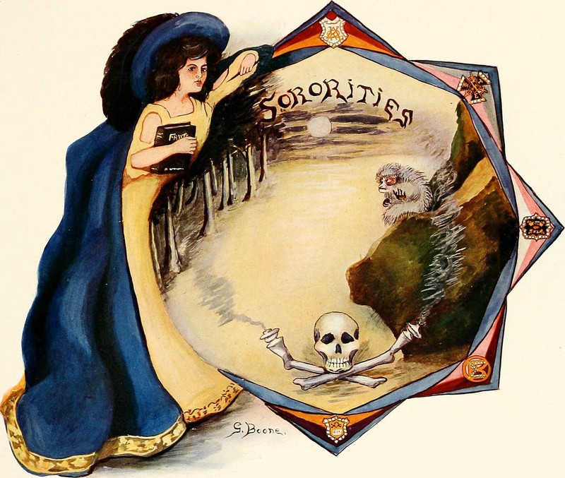 Here is revealed the only proper way for a gentleman to gaze upon a lady's bosomed physique. From the Fort Wayne High and Manual Training School's Cauldron yearbook, 1904. See How to Hoodoo Hack a Yearbook.