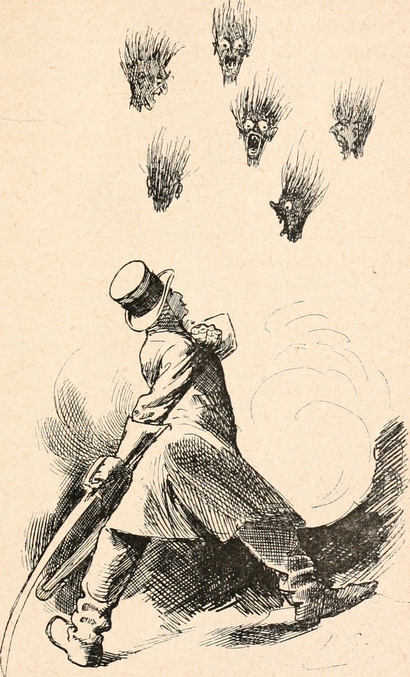An illustration from Andiron Tales by John Kendrick Bangs and illustrated by Clare Victor Dwiggins, 1906.