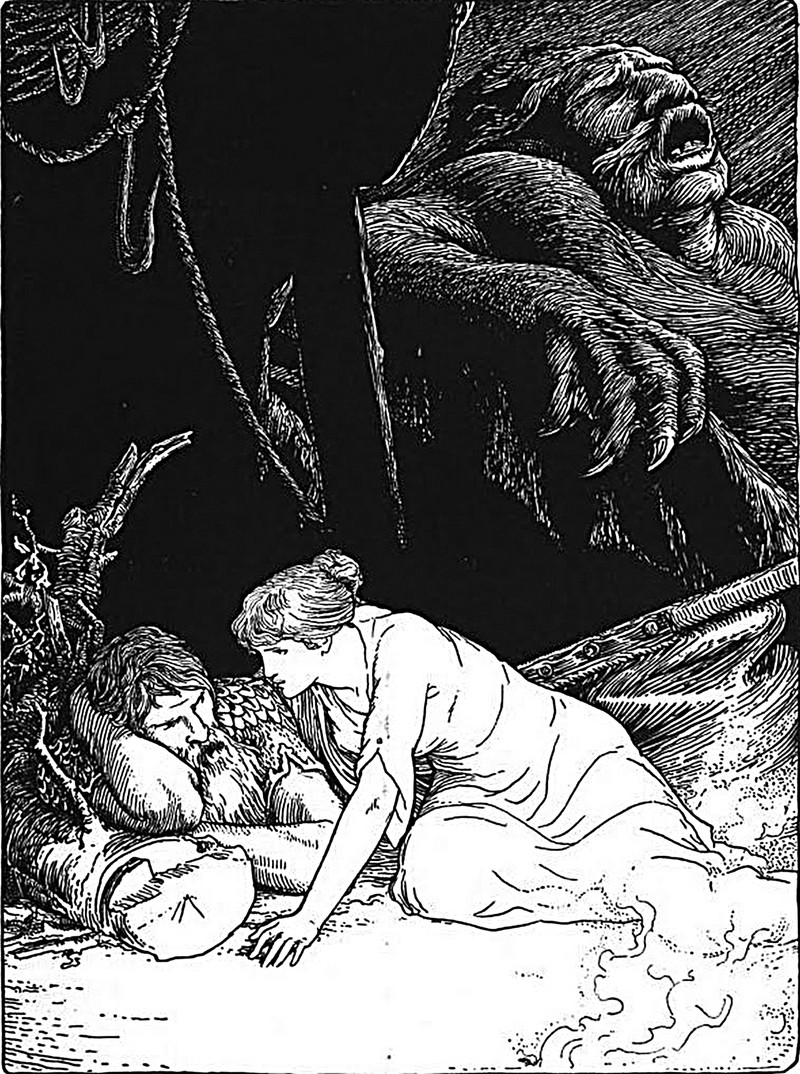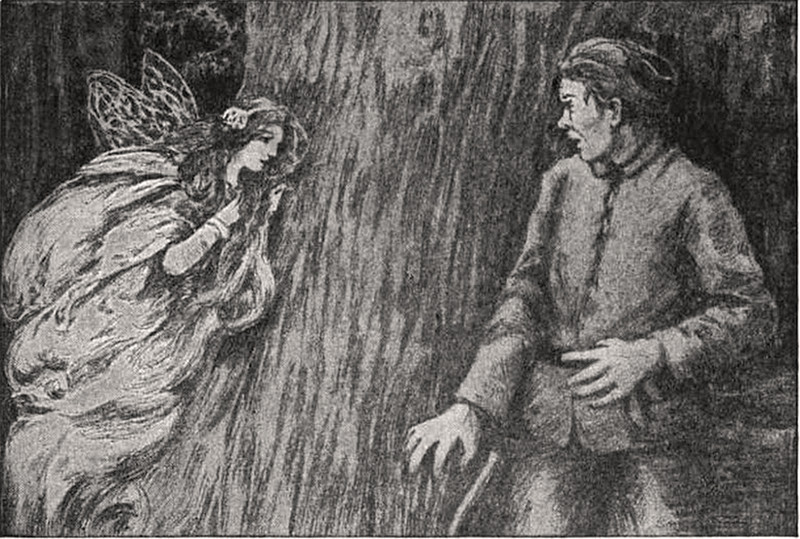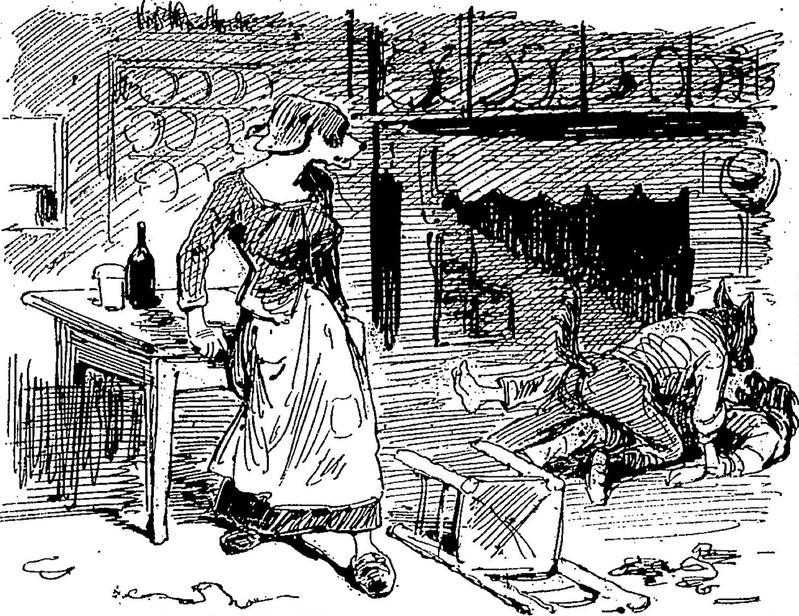 "'Trembling' at the church door." From Celtic Fairy Tales, selected by Joseph Jacobs and illustrated by John D. Batten, 1892.