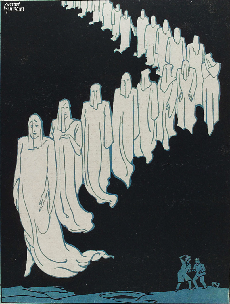 Terrifying black eye holes. From Kladderadatsch, 1921.