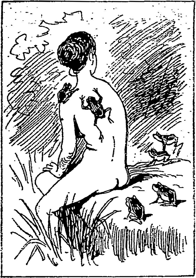 "He was beginning to differentiate the frog's chorus from the owl's solo." From The Judge, 1918.