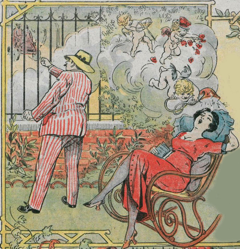 May lightning hit a giant snail and the man of your dreams pop out. From L'Album Comique de la Famille, 1905.