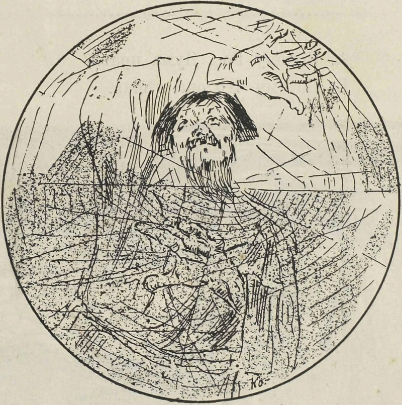 Here's an illustration feeling claustrophobic in his circular frame. From Ezh, 1907.