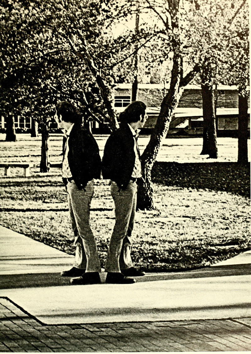When parallel universes collide, one may find oneself back to back with oneself. From Atlantic Christian's 1971 yearbook.