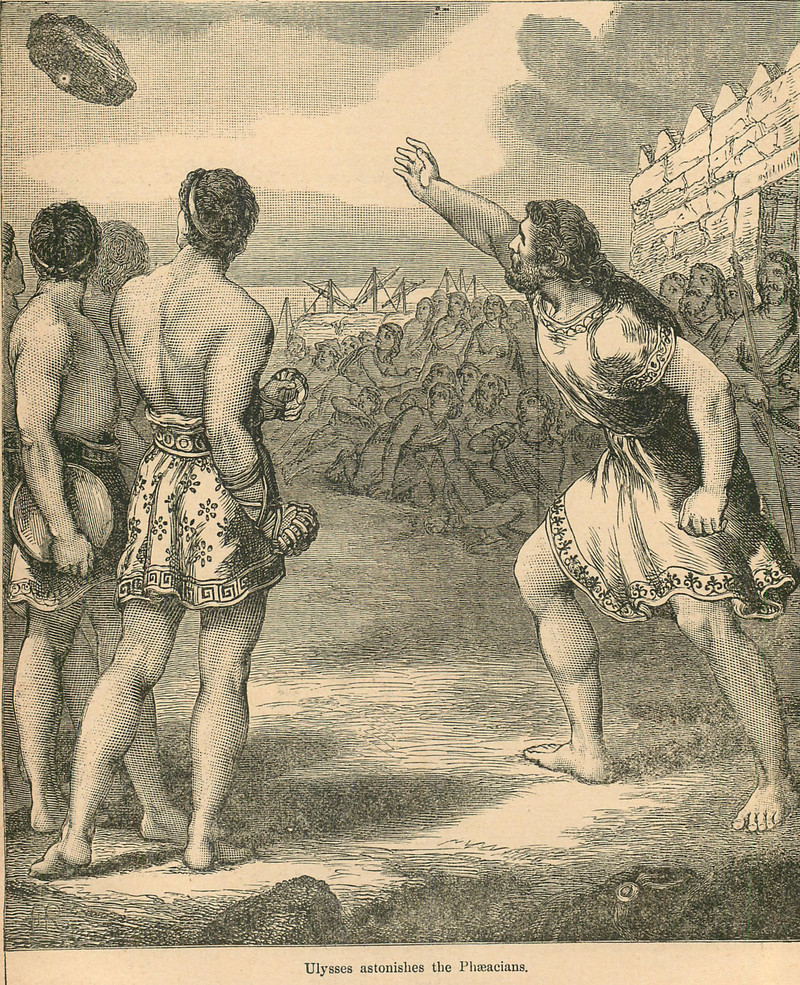 "Ulysses shooting at Antinous." From Chatterbox, 1886.