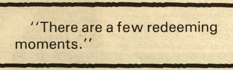 "There are a few redeeming moments." From B.A.R., 1985.