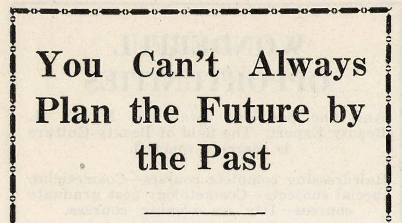 "You can't always plan the future by the past." From Improvement Era, 1930.