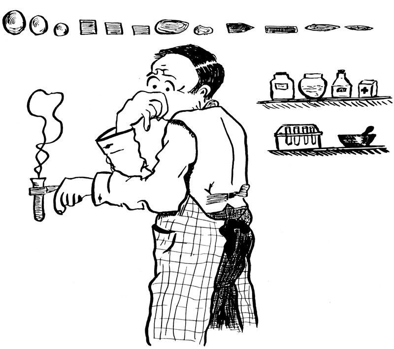 "How to pour molasses out of a cup." From Improvement Era, 1954.