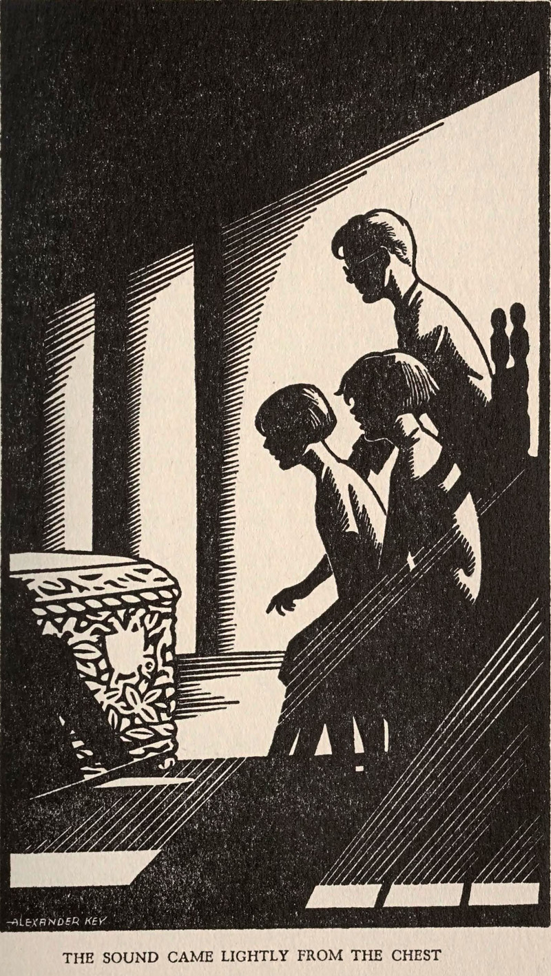 "Examine [the crystal skull] closely ... the longer you look, the more you'll see." From The Shadow, 1944.