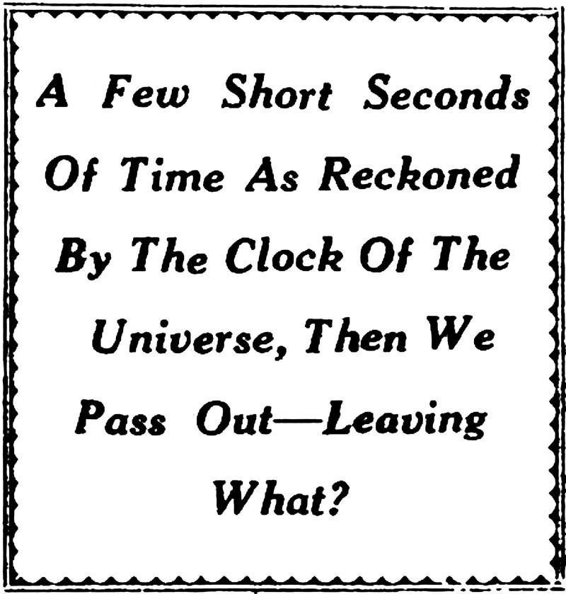 "A few short seconds of time as reckoned by the clock of the universe, then we pass out—leaving what?" From the Bombay Sunday Chronicle, 1935.