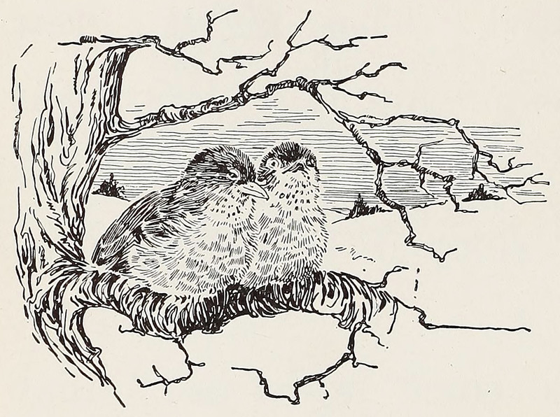 Robins. From The Outdoor Book by Zoe Meyer and illustrated by Clara E. Atwood, 1928.