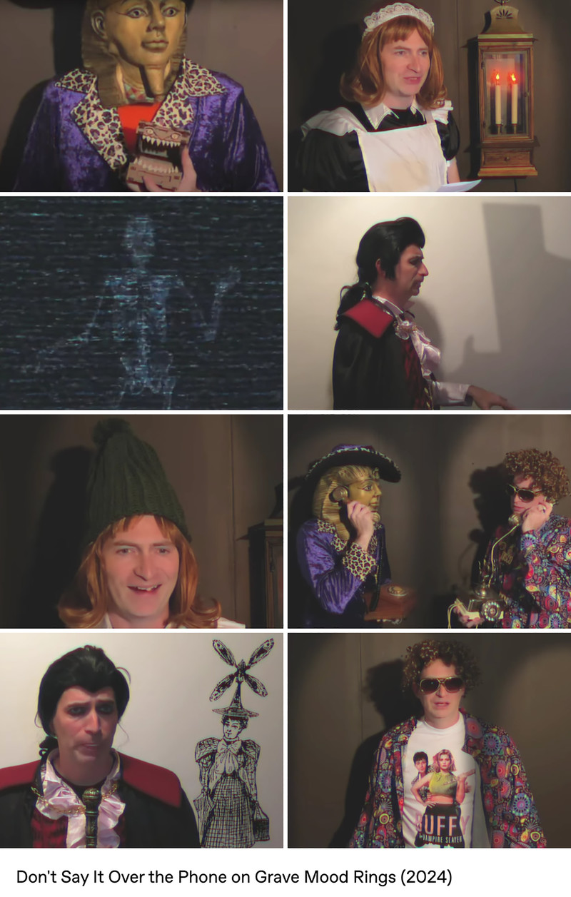 Parody analog horror meets 1970s tropes (like pet rocks, lava lamps, disco music, bell-bottom pants, mirror balls, and of course mood rings) in the web series Grave Mood Rings. It pokes fast fun at classic slow-moving Gothic soap operas like Dark Shadows and the Canadian series Strange Paradise. In addition to a vampiric Viscount, a castle is home to a groovy Doctor (a phlebotomist, naturally), a jolly housekeeper with her own laugh track, a werewolf Vicar, and an arch-nemesis riddler wearing a Sphinx mask. Corny wordplay, the occasional bizarre sing-a-long, and haunted doughnuts punctuate the proceedings, in the tradition of the sketch comedy of MadTV, Kids in the Hall, and SCTV.
