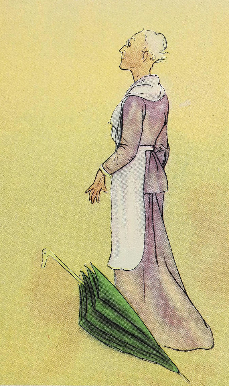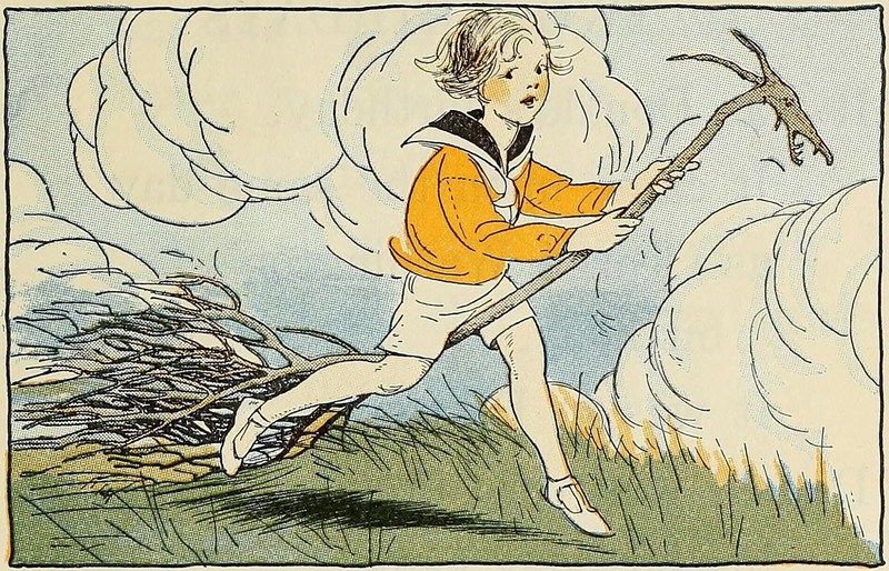 "The cane danced after the pixie." From The Pixie in the House by Laura Rountree Smith and illustrated by Clara Powers Wilson, 1915.