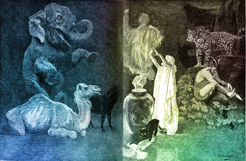Due to our mysteriously esoteric studies, we're often asked for oracular predictions about Hallowe'en. For this year's holiday, we consulted our own Mimetic Oracle, and here's why: Hallowe'en is a grand pageant, and it's been said that theatre reveals what is behind so-called reality. Our Mimetic Oracle draws from 92 characters in six vintage plays, with 166 spoken lines and 31 stage directions in the mix. With the system, one randomly draws five characters and generates a script to illuminate the current drama of life. (There’s a detailed F.A.Q. which explains how the scripts are created, how to make sense of the dialogues, how to determine whether a reading is positive or negative, what to make of the various characters, and why these specific 6 plays were chosen for the system: http://www.mysteryarts.com/play/.)