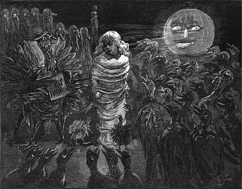 The rabbit's bride. An illustration by Edward Henry Wehnert for Grimm's Fairy Tales, 1857.