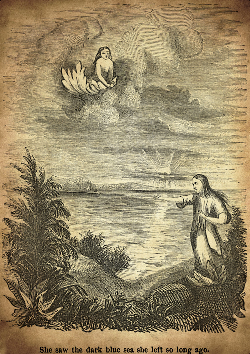 "She saw the dark blue sea she left so long ago." From Flower Fables by Louisa May Alcott, 1855.