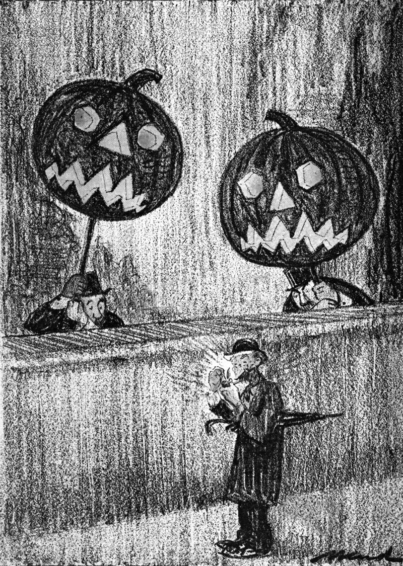 A jack-o'-lantern seeing double. From The Judge, 1922.