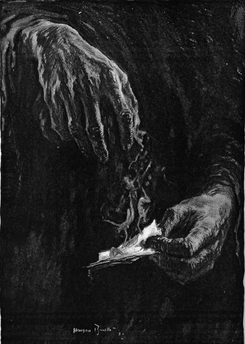 "There shone within the recess of the wardrobe, written in letters of fire, three words -- 'Thou shalt win!'" From The Strand, 1908.