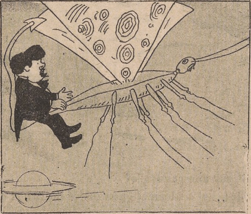 Disguised in ectoplasm to charm spiritualists (if no one else). From Le Journal Amusant, 1923.