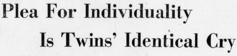 "Plea for individuality is twins' identical cry." From The Rotunda newspaper of Longwood College, 1961.